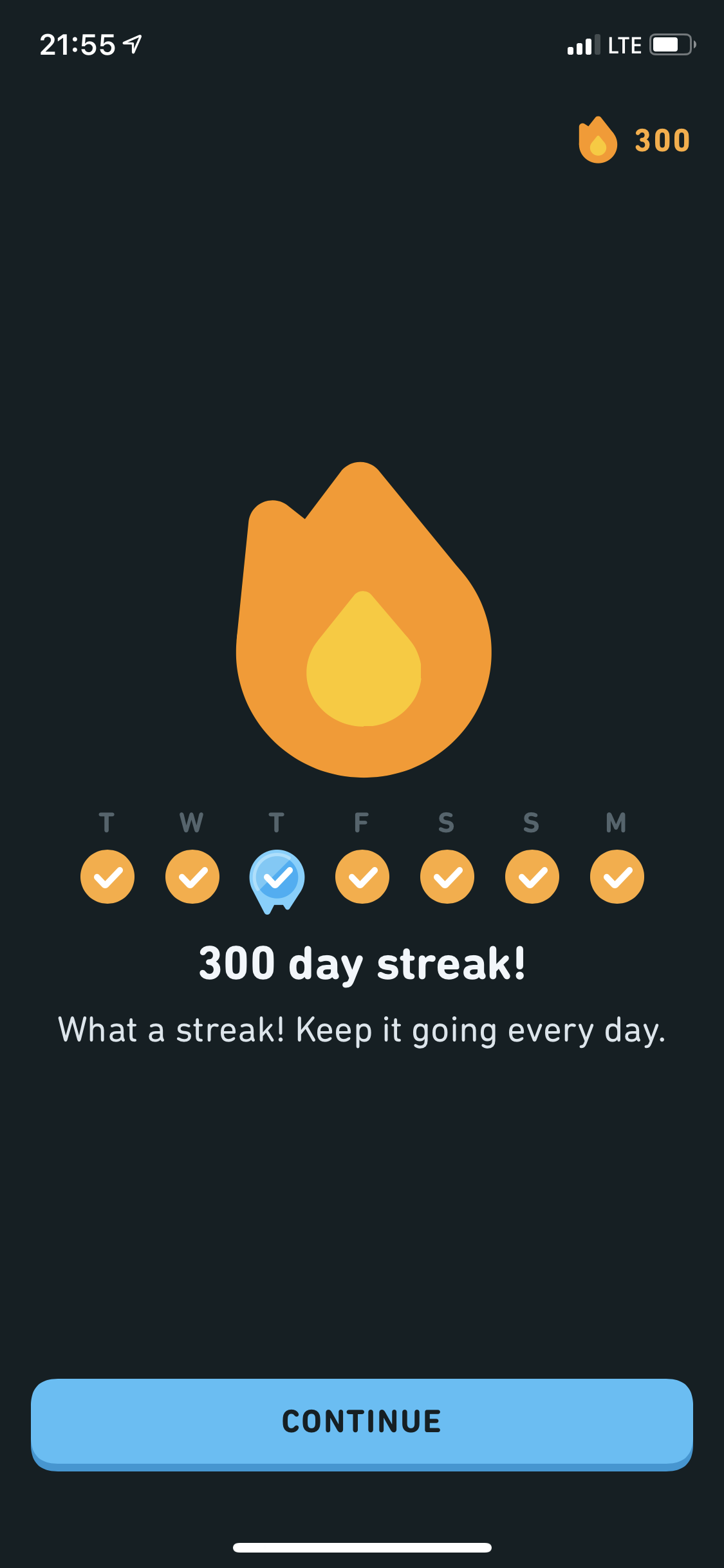 I hit a numeric milestone in Duolingo yesterday, 300 days learning Spanish.