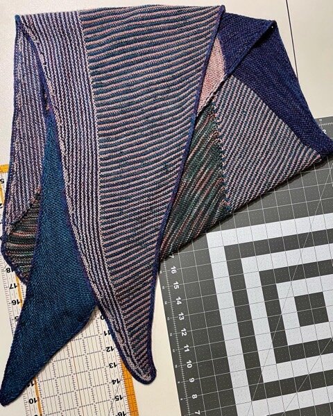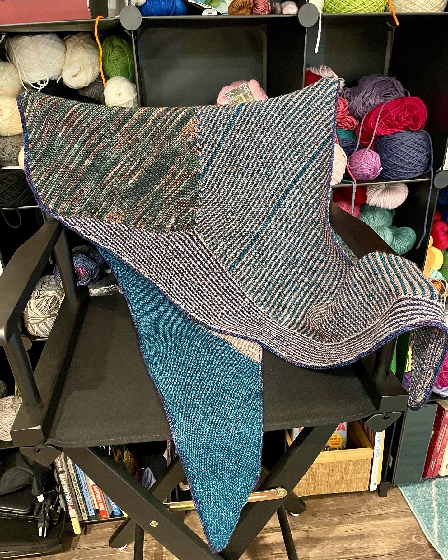 It took a while, but I finally finished my first Westknits shawl, Vertices Unite. I used the sock yarns from @by.delz’s sock club, so each section has a nice sparkle. It was a fun knit, and I love the colors. Now I need to wait for cooler weather to enjoy it.